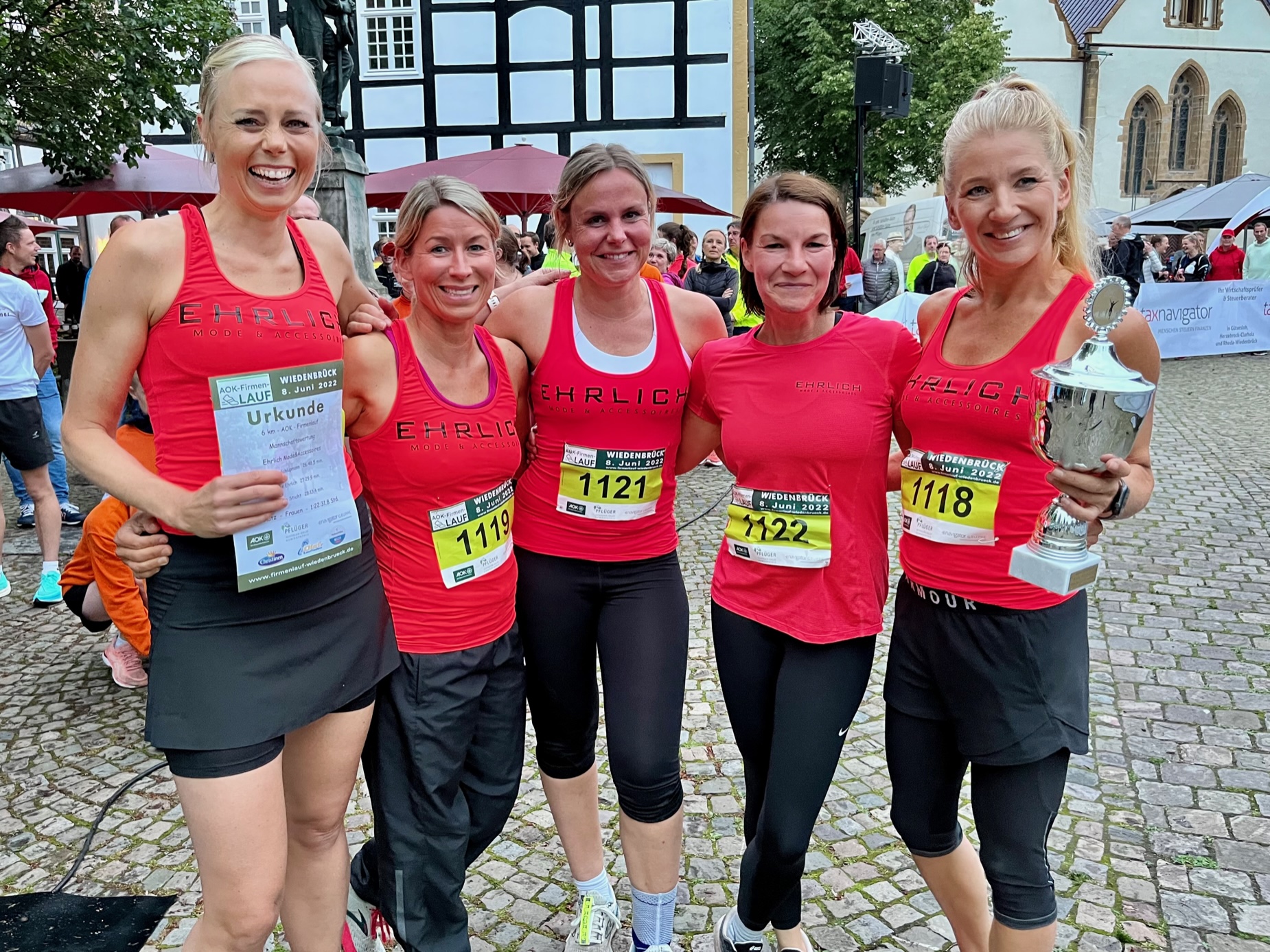 Die Raummanufaktur powered bei DJK Gütersloh stellte mit Lukas Knopf (21:59), Benno Kerstin (22:28) und Erik Schüttforth (22:52) das schnellste Männerteam. Bislang waren die Schultz-Brüder von Gestamp abonniert auf diese Trophäe. Aber, die Bielefelder waren dieses Mal nicht am Start. Bei den Frauen setzte sich einmal mehr die Mannschaft von Ehrlich Mode& Accessoires durch mit Kirsten Schlüpmann (26:48), Silke Ehrlich (27:29) und Sandra Sticht (28:13).