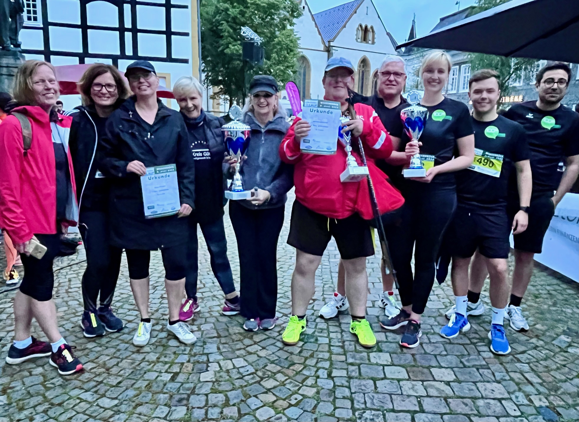 Der Kreis Gütersloh hat beim 10. AOK-Firmenlauf in Wiedenbrück am Mittwoch das größte Team an den Start gebracht. 72 Läuferinnen und Läufer der Kreisverwaltung erreichten das Ziel beim Lauf über 4 und 6 Kilometer. Weitere “Kreisler” werden noch ihre virtuell erzielten Ergebnisse nachreichen. Damit stellte das Team des Landrats einmal mehr die größte Teilnehmergruppe.
