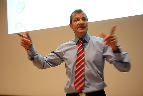 Dr. Wolfgang Feil ist Ernährungsexperte. Der 55-Jährige Schwabe berät unter anderem die Fußballer der TSG Hoffenheim, die deutsche Handball-Nationalmannschaft, den Triathleten Daniel Unger und die österreichischen Skisportler. Im Kreishaus hielt Dr. Feil am 20. Februar einen bemerkenswerten Vortrag, den Robert Becker zusammengefasst hat.